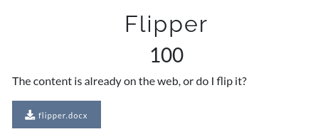 File name "baseflip.txt" is an hint to the challenge's content. Reverse, base64 decode and the reverse one more time. True to the challenge name, it was a point Bonanza XD